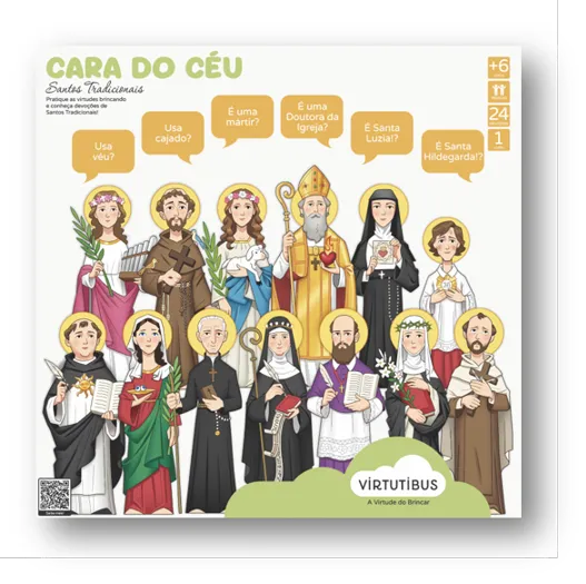 O jogo CARA DOS SANTOS TRADICIONAIS DO CÉU da PRAY&PLAY apresenta 24 diferentes devoções de Santos e Santas, e desafia os jogadores a descobrirem qual é a devoção do outro jogador, com perguntas e respostas, no melhor estilo do clássico ‘cara a cara’!